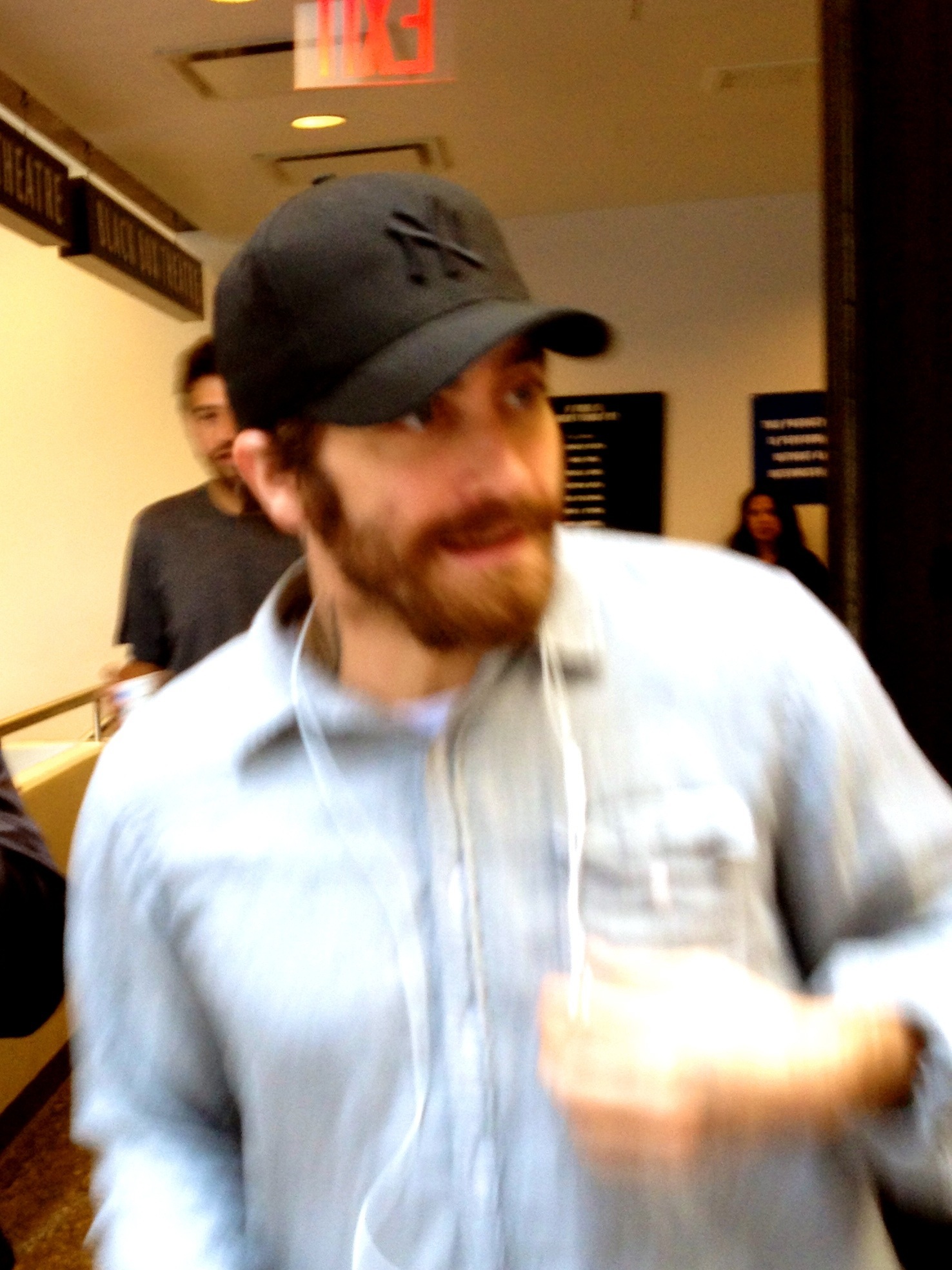 Here’s another good reason to come to New York City as well as an excuse to gratuitously show a close-up picture of the handsome Jake Gyllenhaal. He’s seen here exiting the Roundabout Theatre where he’s performing in the dark comedy If there is I haven’t found it yet. He’s terrific in the show and, I just noticed, he has a lot of a’s and l’s in his name.