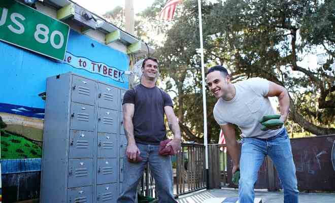 Tiny little Tybee Island (a spot of land in the eastern most part tip of Georgia, lying within the influence of Savannah) plays host to Gay Days 2013, featuring a raft of fun events, including Cornholing. Check out its description and originhere but basically you toss bean bags into a hole, like these two fine fellows above.