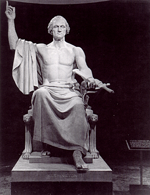 The statue in the photo is by Horatio Greenough, 1840. It’s paired with a similar, bear-chested, seated image of the Emperor Augustus from the 1st century BCE. I’ll update this post later when that image is available.